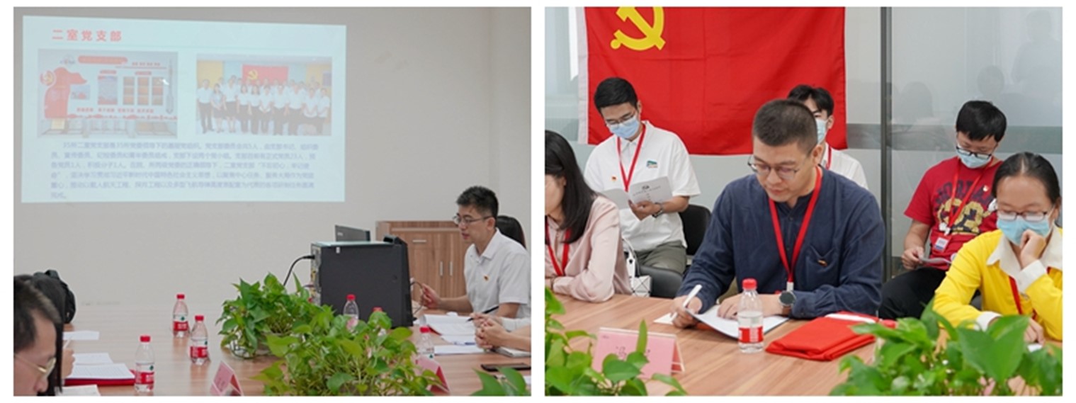 二室党支部书记秦智韬和研究生电路党支部书记冯程分别介绍了双方党支部的基本情况,并就党支部开展党组织建设、科研攻关、社会服务等等情况进行了介绍。